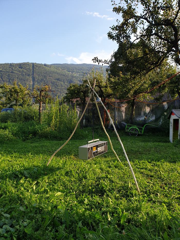 Ils et elles ont entrepris de travailler autour du motif de la radio. Celui-ci s'est imposé lors de la phase d’observation: le chantier lui-même n’était pas accessible, mais seulement perceptible à l’oreille. On pouvait entenre le bruit des travaux et la radio allumée à longueur de journée. Les étudiant·e·s ont été amené·e·s à réfléchir à la dimension sonore comme à la dimension sculpturale de l’objet et à proposer des interventions temporaires. L’aspect portatif du medium a aussi conduit au nomadisme d’un groupe d’étudiant·e·s dans un lieu culturel. Les travaux exposés au soir du 29 août sont le résultat de ces questionnements.