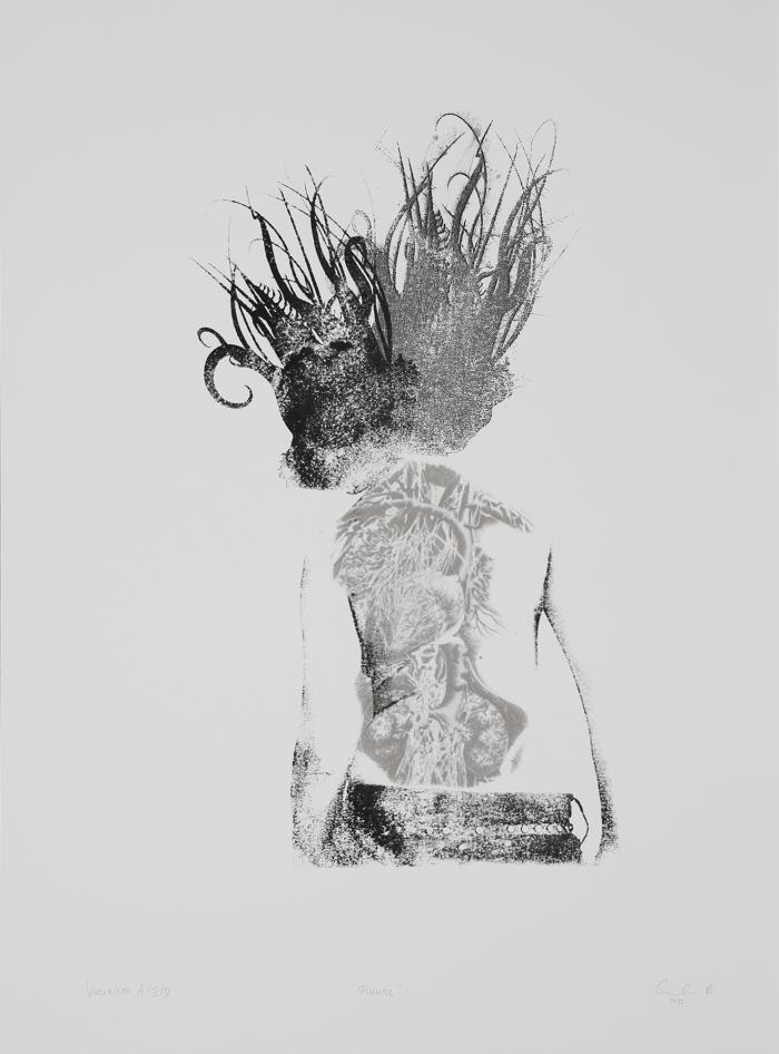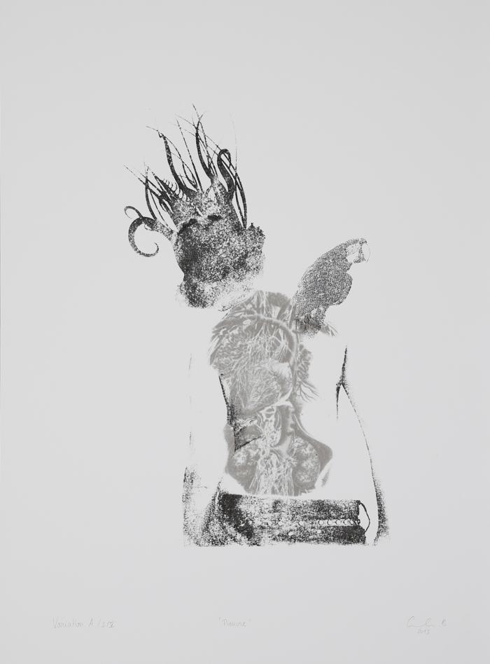 Series of 5 variations in black and white screen printing and acetone transfer