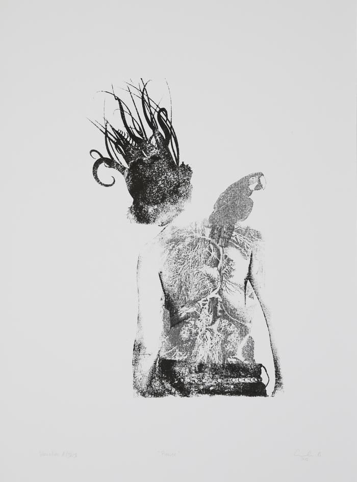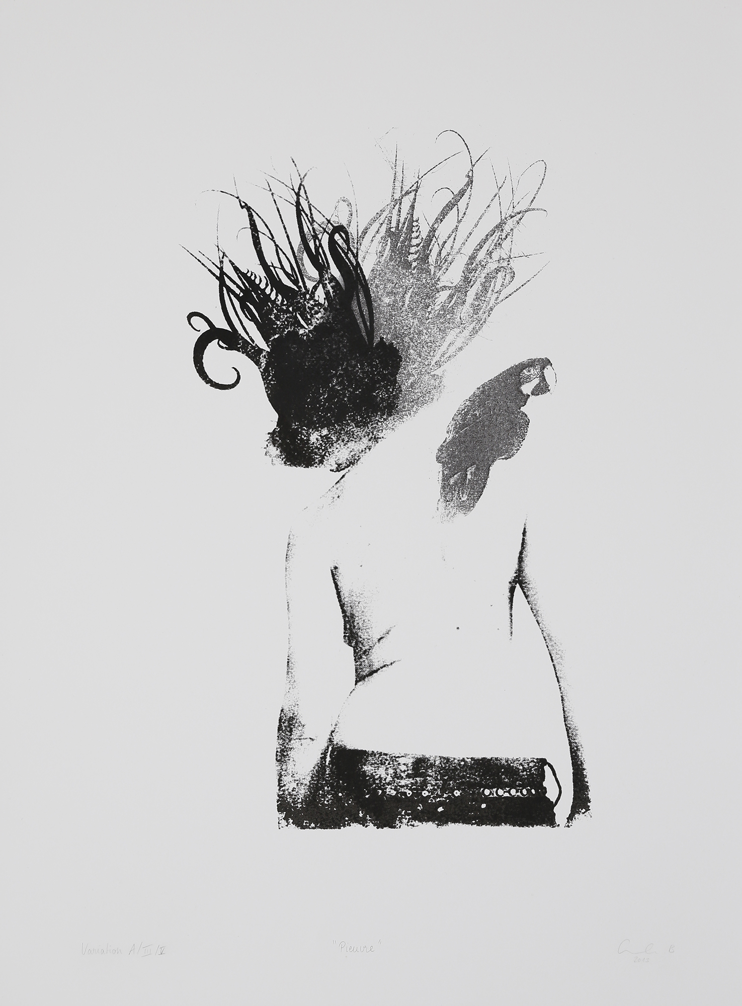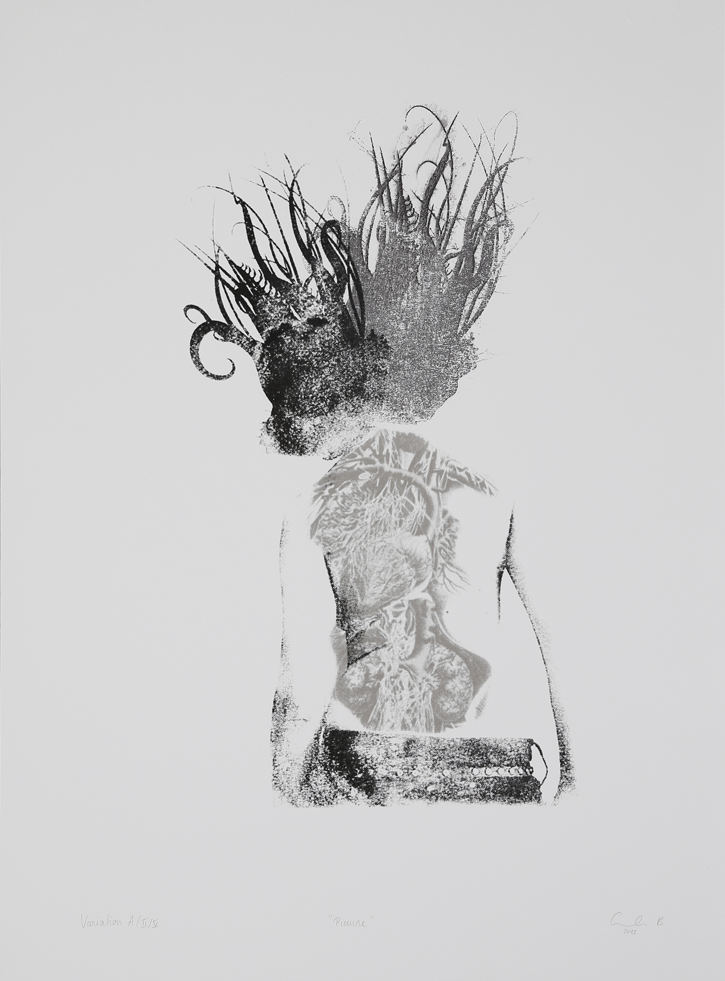 Série de 5 variations en sérigraphie noir-blanc et transfert à l'acétone